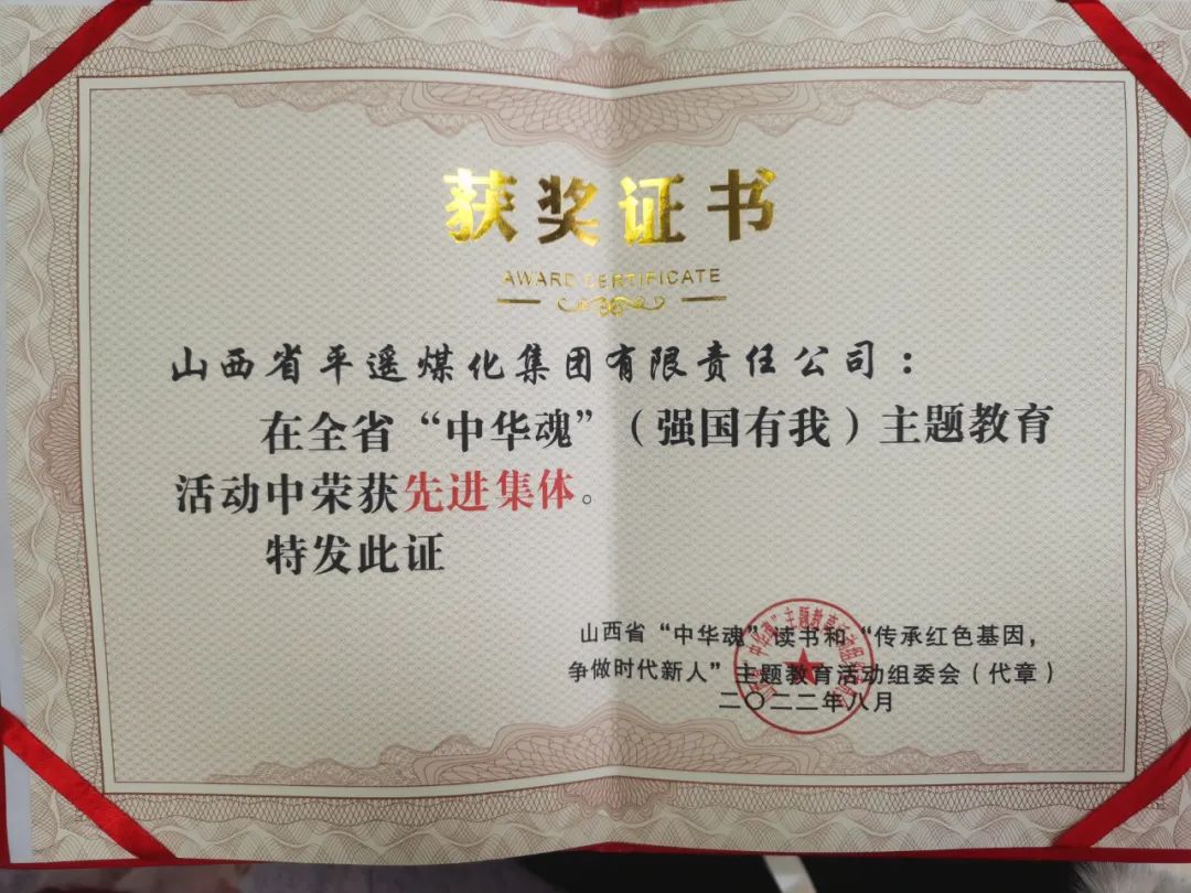 2022年8月,“中華魂”(強國有我)主題教育活動圓滿結束,集團公司員工踴躍報名參加此次活動并榮獲佳績。 其中平遙煤化集團在全省“中華魂”(強國有我)主題教育活動中榮獲先進集體榮譽稱號; 唐都公司張琪在全國“中華魂”(強國有我)主題教育活動中榮獲一等獎,同時在2021年全市“中華魂”演講比賽中榮獲一等獎; 集團公司李慧靜在全省“中華魂”(強國有我)主題教育活動中榮獲一等獎; 集團選煤廠王利棟在全國“中華魂”(強國有我)主題教育活動中榮獲二等獎。 通過此次演講及征文活動,展示了煤化良好的企業形象和青年職工積極向上的精神風貌,同時也激發了廣大煤化青年的愛國之情、愛國之志,增強了煤化青年的責任與擔當。 集團公司:冀建政