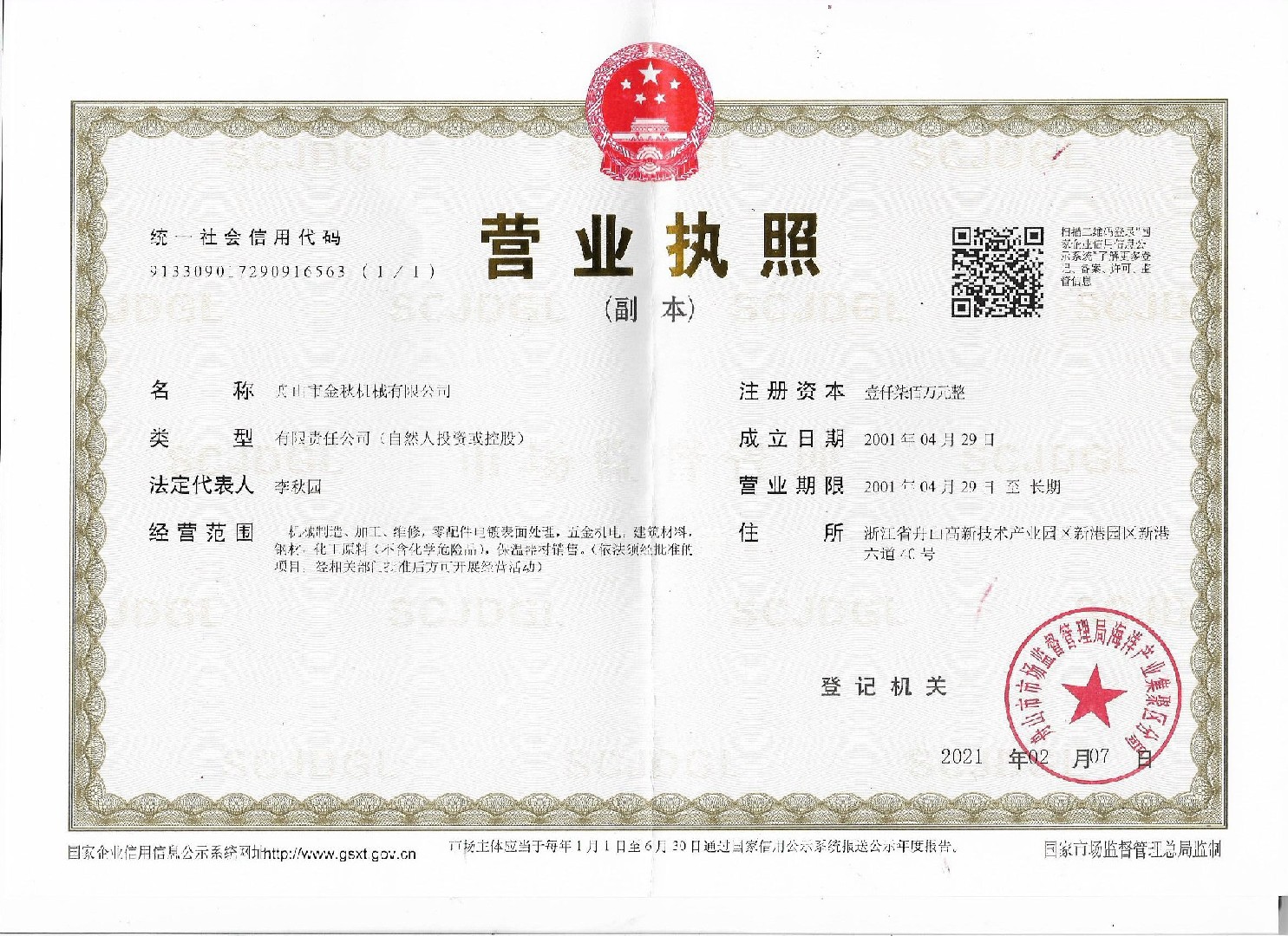 舟山市金秋機械有限公司是一家集金屬表面技術加工處理、電子元件生產、機械制造與研發為一體的科技型企業。占地5萬多平方米,廠區地理位置十分優越,并擁有專業技術團隊十余人。公司致力于生產晶振外殼、流延機制造與研發,石油抽油泵柱塞及表面工藝處理等。公司生產的石油抽油泵柱塞已經出口印尼和美國。研發生產各種型號的流延機是采用日本目前先進的技術;49U/S晶振外殼已經從第一代升級為目前第六代產品,并仍在研發更高端的SMD替代品,并與上海交通大學合作研發新能源項目。公司通過了ISO9001質量體系認證,擁有自主知識產權的發明和實用新型專利共計三十多項,分別被評為國家高新技術企業、省、市專利示范企業,省科技型企業等榮譽稱號。